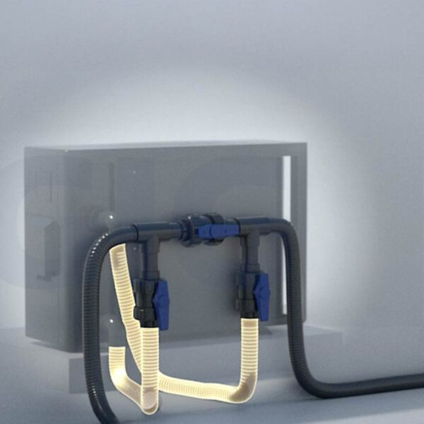 By-Pass till Poolgigantens poolvärmepumpar. By-Passen används för att manuellt styra flödet genom pumpen för att optimera värmepumpens effekt i en pool.